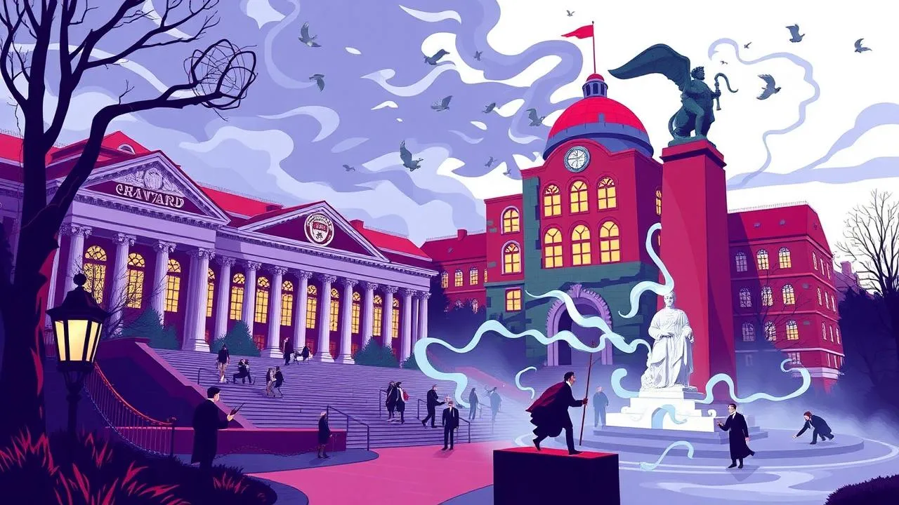 Descrição: Embora não seja diretamente relacionado a Harvard, a ideia de um mundo mágico paralelo e a busca por respostas pode ser comparada à experiência acadêmica em uma universidade de elite.