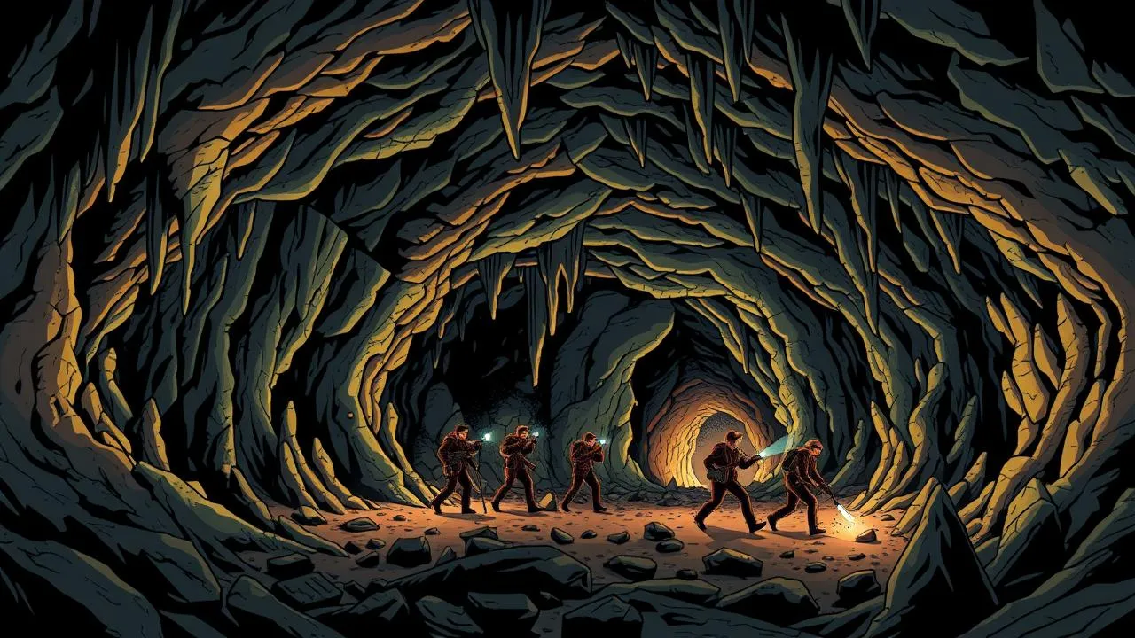 Descrição: Uma equipe de aventureiros busca um tesouro perdido em uma caverna, enfrentando armadilhas e inimigos. A ação e a aventura em um cenário subterrâneo são centrais.